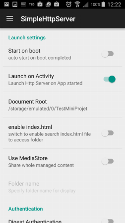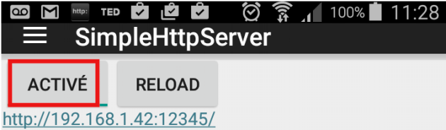 Ouvrir sur votre tablette l'application Simple http Server