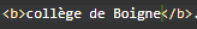 4 | Mettre le mot collège de Boigne en gras. Pour cela il faut ajouter des balises <b> et </b> avant et après le mot collège de Boigne Remarque : b comme bolt (qui veut dire gras en anglais) |