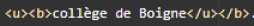 5 | Souligner le mot collège de Boigne. Pour cela il faut ajouter des balises <u> et </u> avant et après le mot collège de Boigne Remarque : u comme underline (qui veut dire souligner en anglais) |