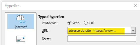 Lien vers un autre site web | 1 - Sélectionner le mot ou l'image 2 - | ||