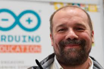 Né à Ivrea en Italie au milieu des années 2000, l'idée des créateurs d'Arduino (ci-contre Massimo Banzi cofondateur d'Arduino) était de créer une carte électronique, facilement programmable par des non-techniciens. Ils souhaitaient que cette carte soit modulaire (qu'on puisse l'utiliser pour dans la robotique, dans l'art, pour construire des machines...), bas-coût (<20€) et ouverte (que la recette de création soit disponible sur Internet). Et le résultat est plutôt probant puisque des dizaines de milliers d'artistes, de designers, d'ingénieurs, de chercheurs, d'enseignants, et même d'entreprises l'utilisent pour réaliser des projets incroyables dans de multiples domaines : -prototypage rapide de projets innovants utilisant l'électronique, Arduino facilitant l'expérimentation en amont de la phase d'industrialisation ; -production artisanale d'objets numériques et de machines-outils à faible coût dans la perspective d'une culture d'appropriation technologique favorisant le bricolage et la débrouille ; -captation et analyse de données scientifiques (environnement, énergie, etc.) à des fins éducatives, de recherche ou d'appropriation citoyenne ; -spectacle vivant, grâce aux nombreuses fonctions d'interaction offertes par Arduino, il est possible de créer des performances de VJing (DJ vidéo), utiliser le mouvement des danseurs pour générer en temps réel des effets sonores et visuels dans un spectacle ; -installations d'arts numériques, Arduino permettant de réaliser des œuvres d'art interagissant de manière autonome avec le public ; -Mode et design textile, plusieurs stylistes et designers investissant ce domaine créatif en exploitant les possibilités offertes par l'intégration de l'électronique notamment dans des vêtements (e-textile) ; -projets pédagogiques à destination d'étudiants, de professionnels ou du grand public selon les porteurs de ces initiatives : écoles supérieures , centres de formation spécialisée ou des FabLabs. |
