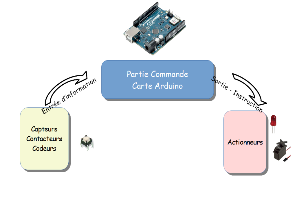 La carte Arduino est le contrôleur Principal (ou module de commande) des systèmes qu'elle commande. C'est le cerveau du système. Elle comporte des
