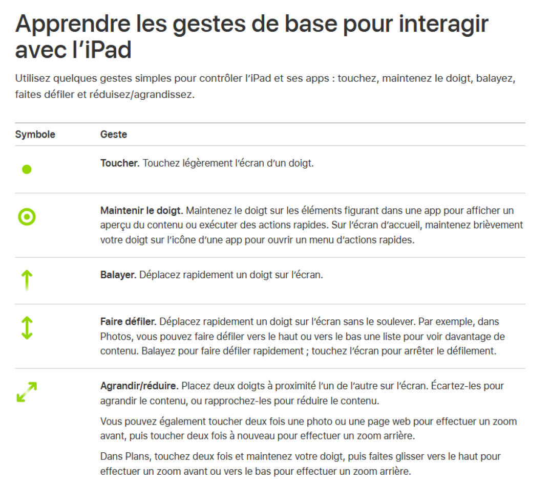 Comment utiliser l'ipad ? Il est possible de commander l'ipad en faisant glisser les doigts. Encore faut-il connaître les combinaisons. |