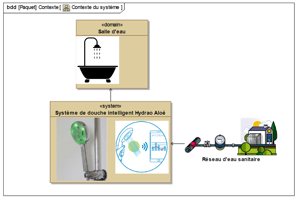 4 | 2ème partie : Comportement attendu pour l'utilisateur Pour les parties suivantes, vous disposez des diagrammes SysML et du schéma synoptique du pommeau Aloé (fichier Hydrao_SysML.pdf). Si besoin, des informations sur les diagrammes des cas d'utilisation et les diagrammes états-transitions figurent en annexes 1 et 2.  |  Hydrao