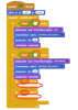 | La partie scripts du lutin scratch comporte des trous. Ces informations manquantes sont entourées en rouge sur le script ci-contre. Compléter les blocs manquants du script dans scratch. |