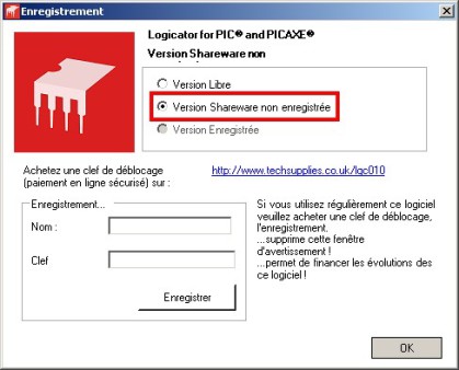 Lancez le programme Logicator en mode "ShareWare non enregistré" (ne pas double cliquer sur le fichier du programme)