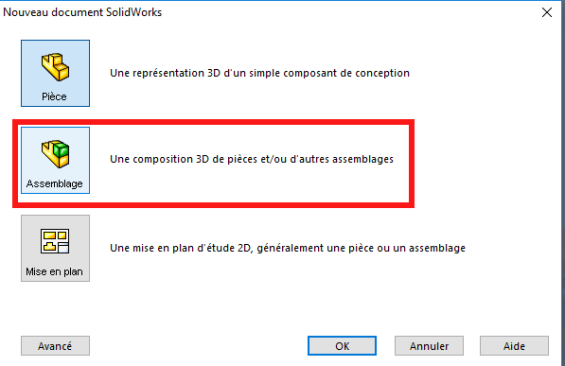3.1 - Créer un nouvel assemblage | Créer un nouvel assemblage (Fichier - Nouveau-Assemblage)