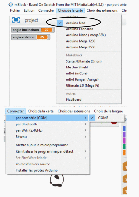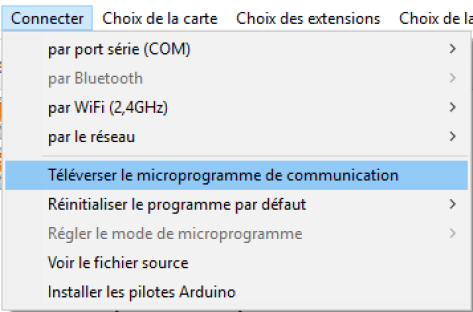 Cette dernière commande doit être faite avant même d'avoir ouvert le programme. Elle permet de transférer sur le robot le programme qui va permettre de le piloter à partir de mBlock.