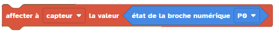 2.2 | Recommencer les étapes précédentes avec les autres capteurs-contacteurs. Vous devez les brancher sur la broche P0 Penser à téléverser le programme avant de visualiser l'information | |