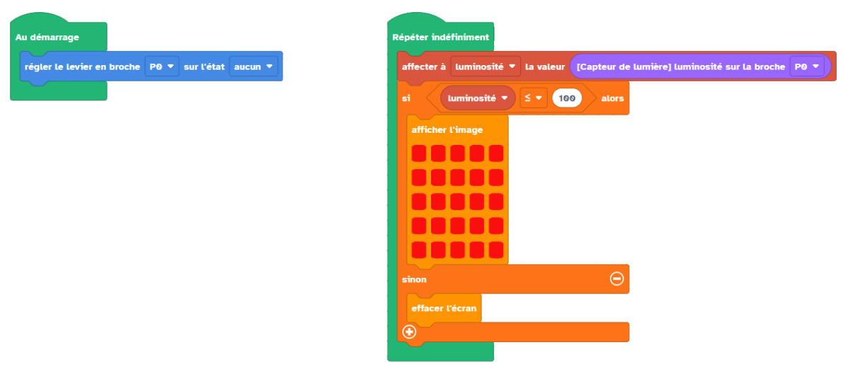 L'objectif de cette partie est d'automatiser le fonctionnement de l'éclairage public. Si un objet est détecté et s'il fait nuit, alors la lumière s'allume. |