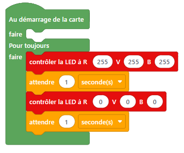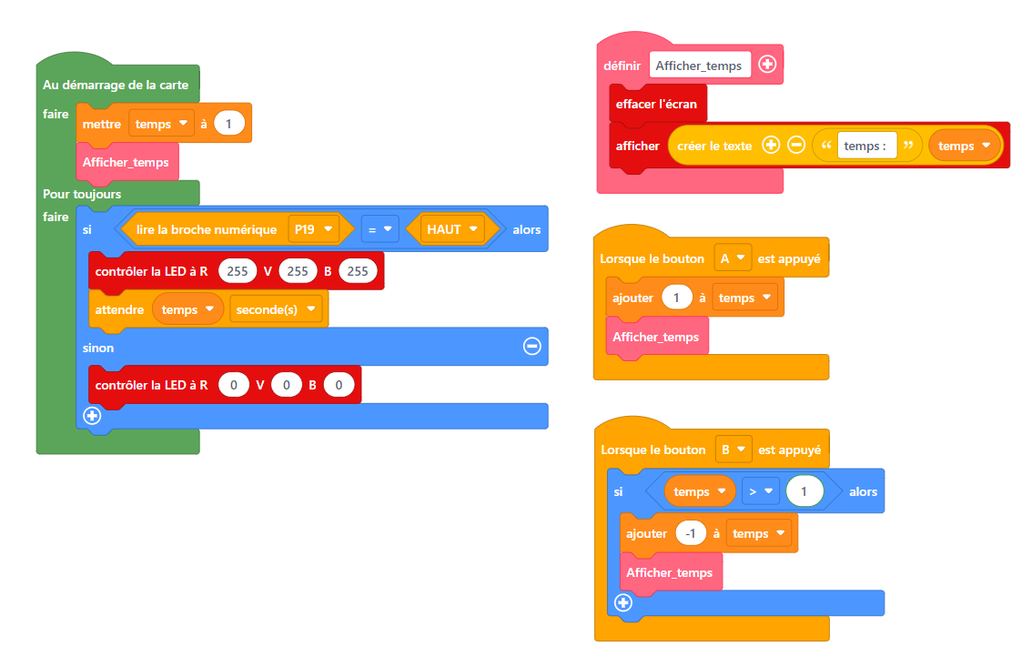 Pour ceux qui ont terminé : Changer la durée d'éclairage | - Programme complet Cliquer sur | 1 - Créer une variable nommée "temps" :