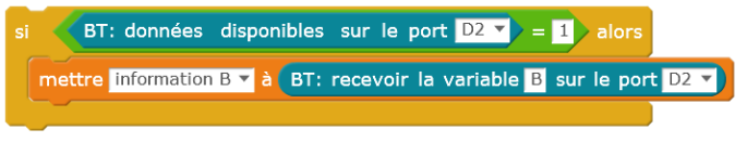 Bluetooth | Permet de communiquer par Bluetooth avec d'autres éléments. A brancher sur D2 | Vitesse de transfert 115200 bauds Si je reçois une donnée par bluetooth, j'affecte à la variable "information B", les données de la variable de communication B. Ceci permet de transmettre plusieurs informations en même temps et de les trier. Permet d'envoyer par BT toutes les 5 secondes la valeur de la température. La variable de transport est Temp (on aura les données suivantes Temp:20.... | ||