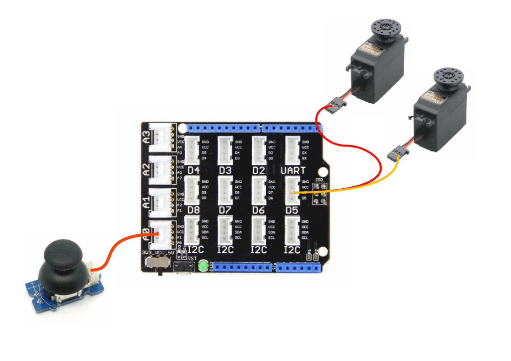 Le Joystick se branche sur un port Analogique de la carte Arduino