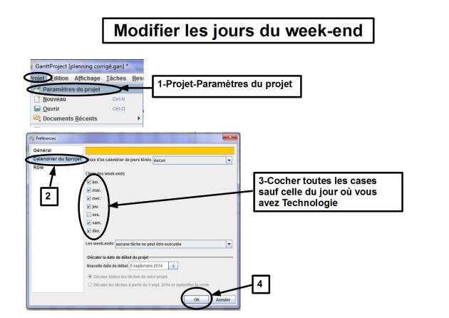 4 | Modifier les jours du week-end pour ne laisser en jour travaillé que celui où vous avez cours de Technologie - | |