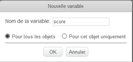 "Score" est une variable que vous devez créer à l'aide du bloc puis
