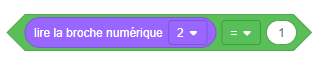 3.2 - Compléter les blocs | - Cliquer en haut à droite sur - Corriger certains blocs qui contiennent des erreurs (soulignées en orange) | Blocs à utiliser : Le bouton droit est branché sur la broche numérique 2 ; Si clique sur bouton droit = Le bouton gauche est branché sur la broche numérique 3 ; Si clique sur le bouton gauche = |