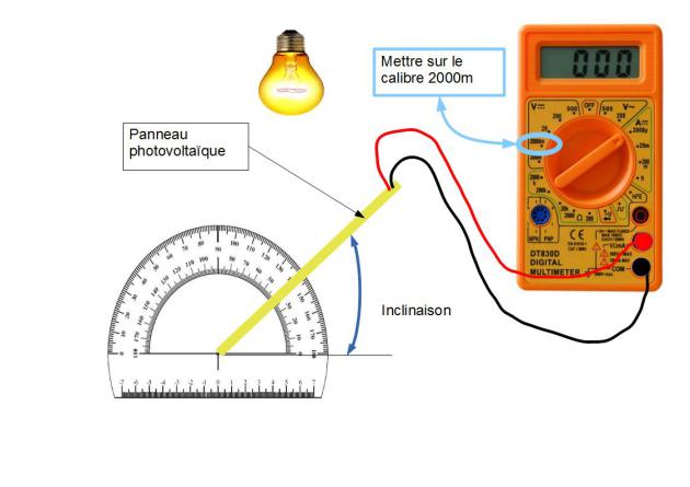 Noter pour chaque angle la valeur de la tension mesurée par le multimètre dans le tableau en téléchargement. La courbe se réalisera toute seule.