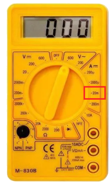 5 | Brancher le multimètre sur les deux fils du traqueur et le mettre sur le calibre 20m[2] | |